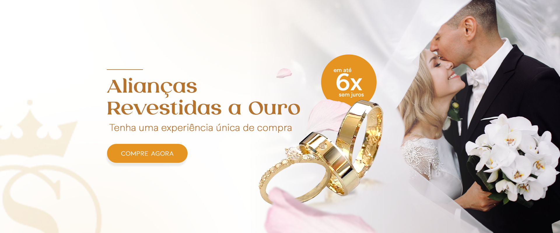 Combo Alianca Banhada A Ouro 6Mm Mega Solitario 2 Anos De Garantia