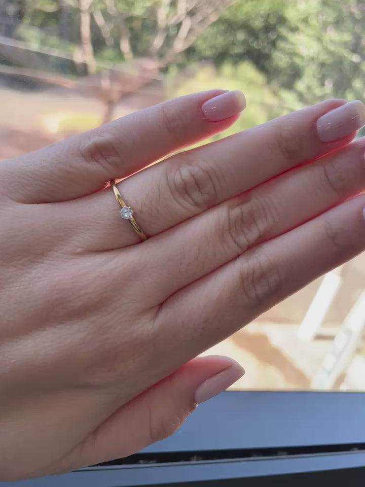 Anel Solitario Liso Com Pedra Banhado Ouro 24K 2 Anos De Garantia