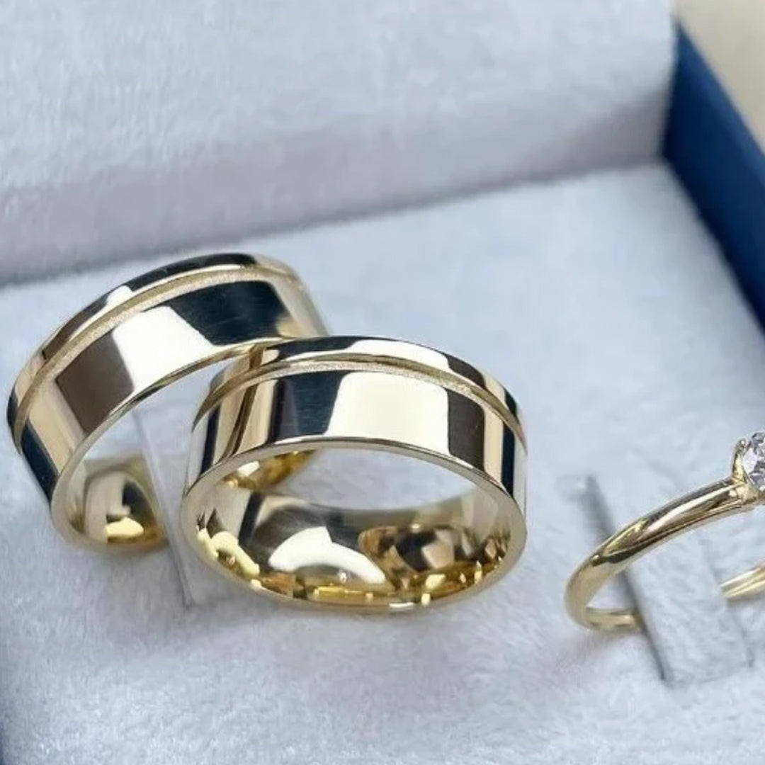 Combo Alianca A5500 Anel Solitario Liso 2 Anos De Garantia