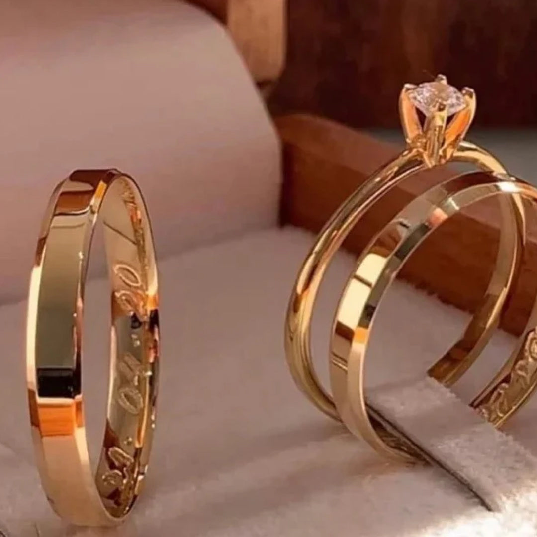 Combo Aliança Banhada Ouro 24k Anatômica 10 anos de garantia Rosalia + Solitário Cravejado