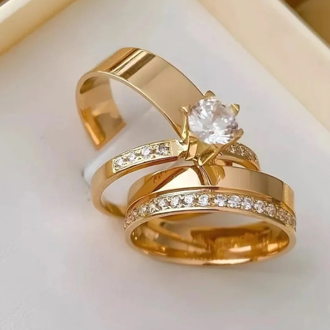 Combo Aliança Banhada Ouro 24k Anatômica 10 anos de garantia Rosalia + Solitário Cravejado