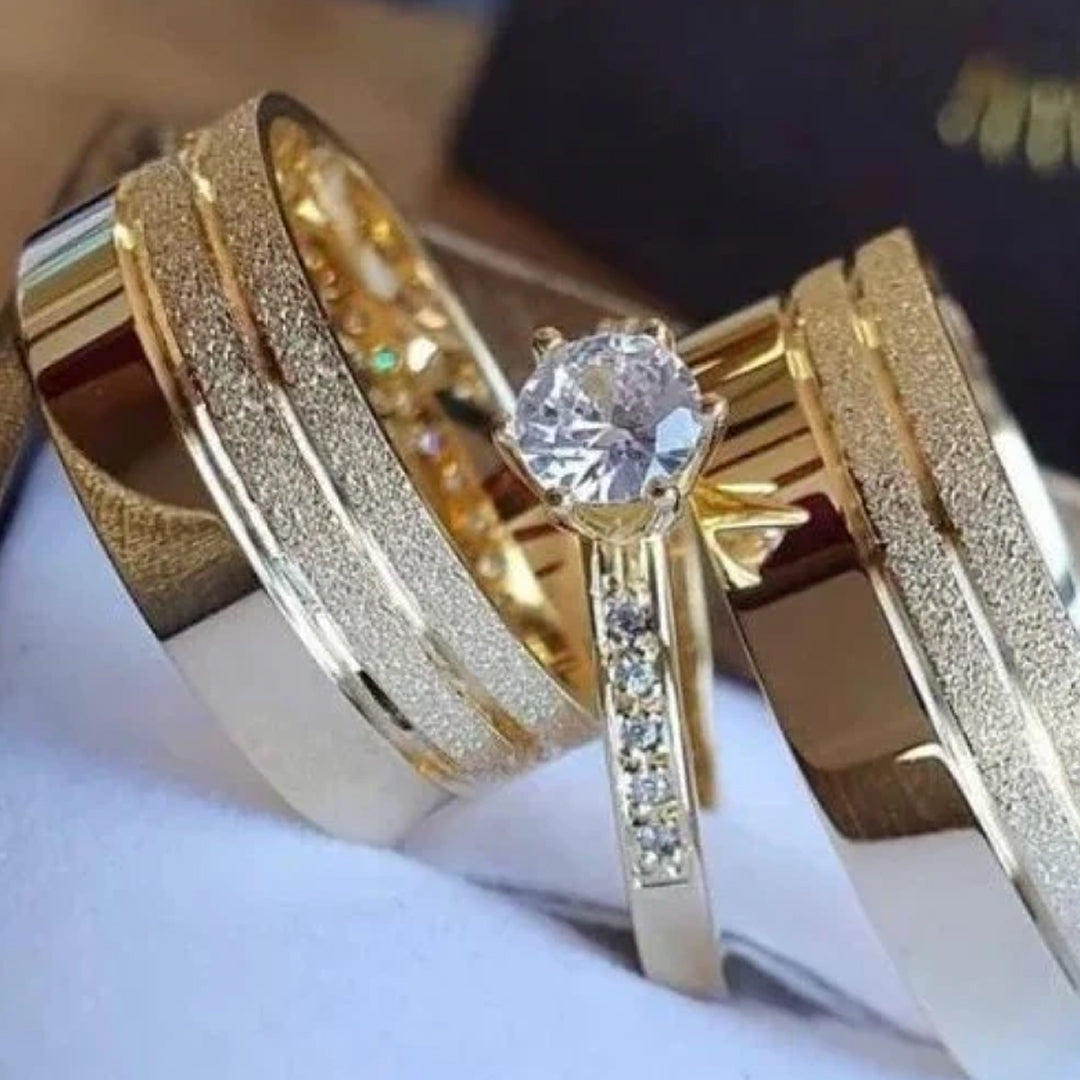 Combo Aliança Banhada Ouro 24k Anatômica 10 anos garantia Honduras Luxo + Solitário Cravejado