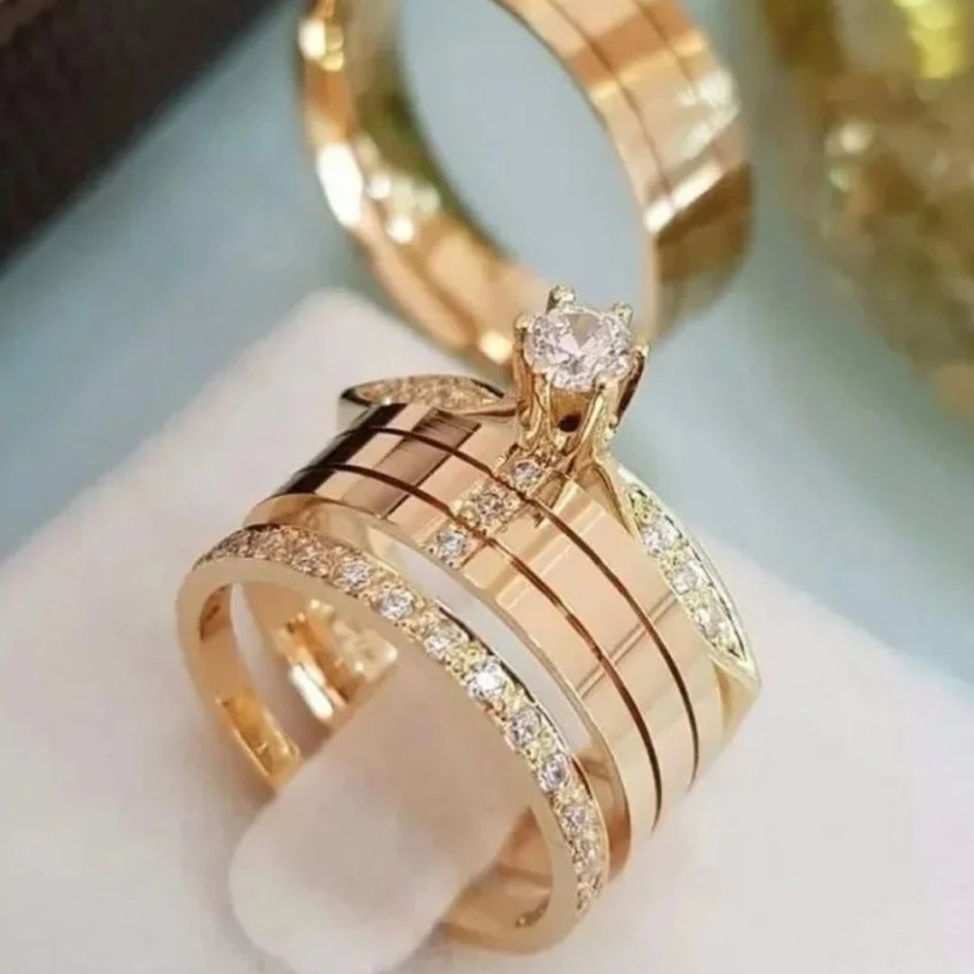 Combo Aliança Banhada Ouro 24k Anatômica 10 anos de garantia Osmã + Solitário Liso