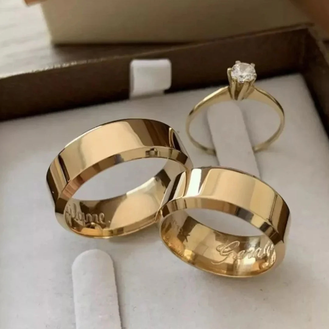 Combo Alianca Chanfrada 6Mm Solitario Liso Revestidas A Ouro 18K