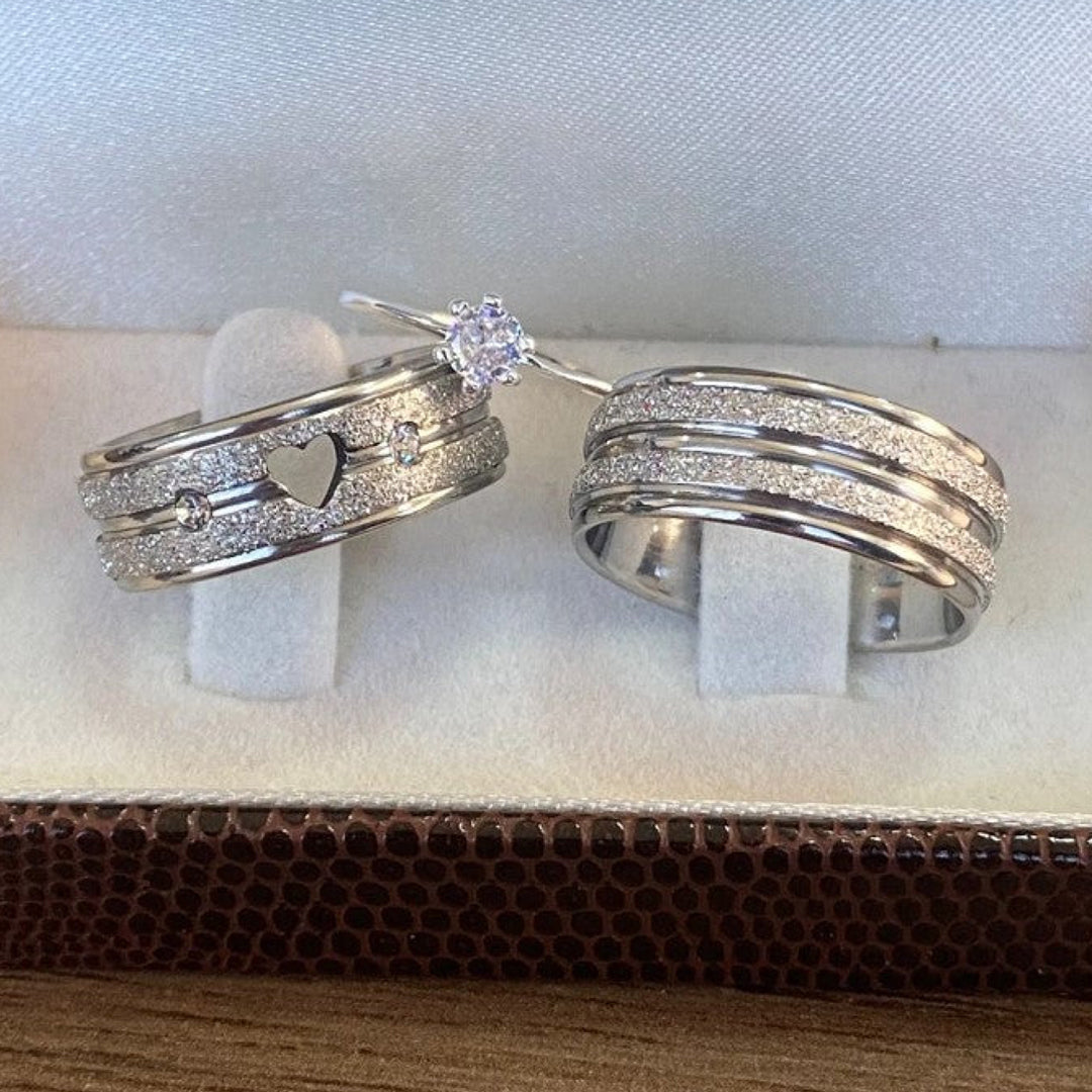 Combo Aliança de Compromisso Diamantada com Coração + Solitário Liso