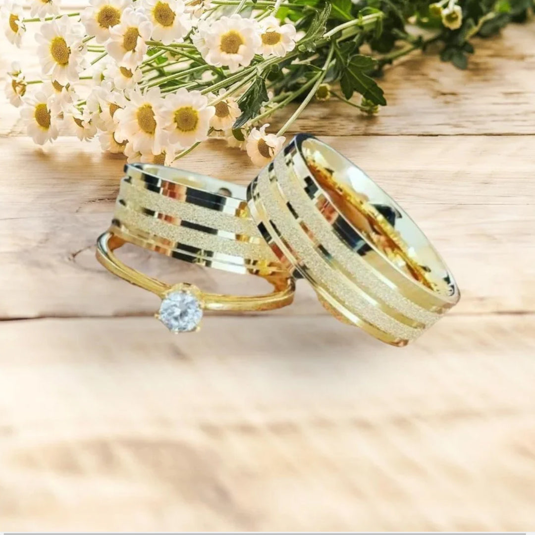 Nossas alianças são fabricadas de moedas. Uma mistura de bronze com alumínio, materiais muito resistentes que trazem a qualidade, brilho e durabilidade do ouro 18k