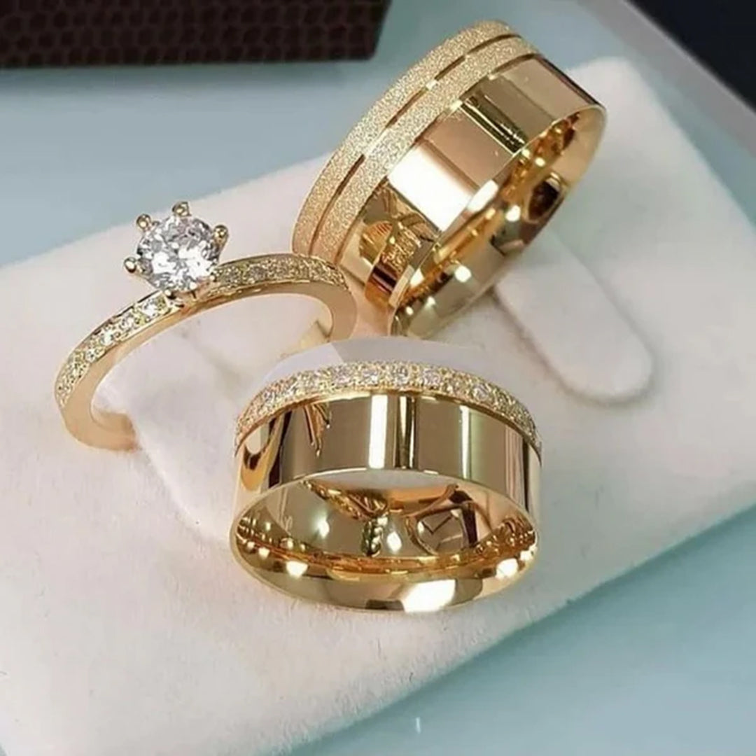 Combo Alianca Moeda Antiga 8Mm Forro LUXO NOVA Solitario Cravejado + aparador 1 Ano Garantia