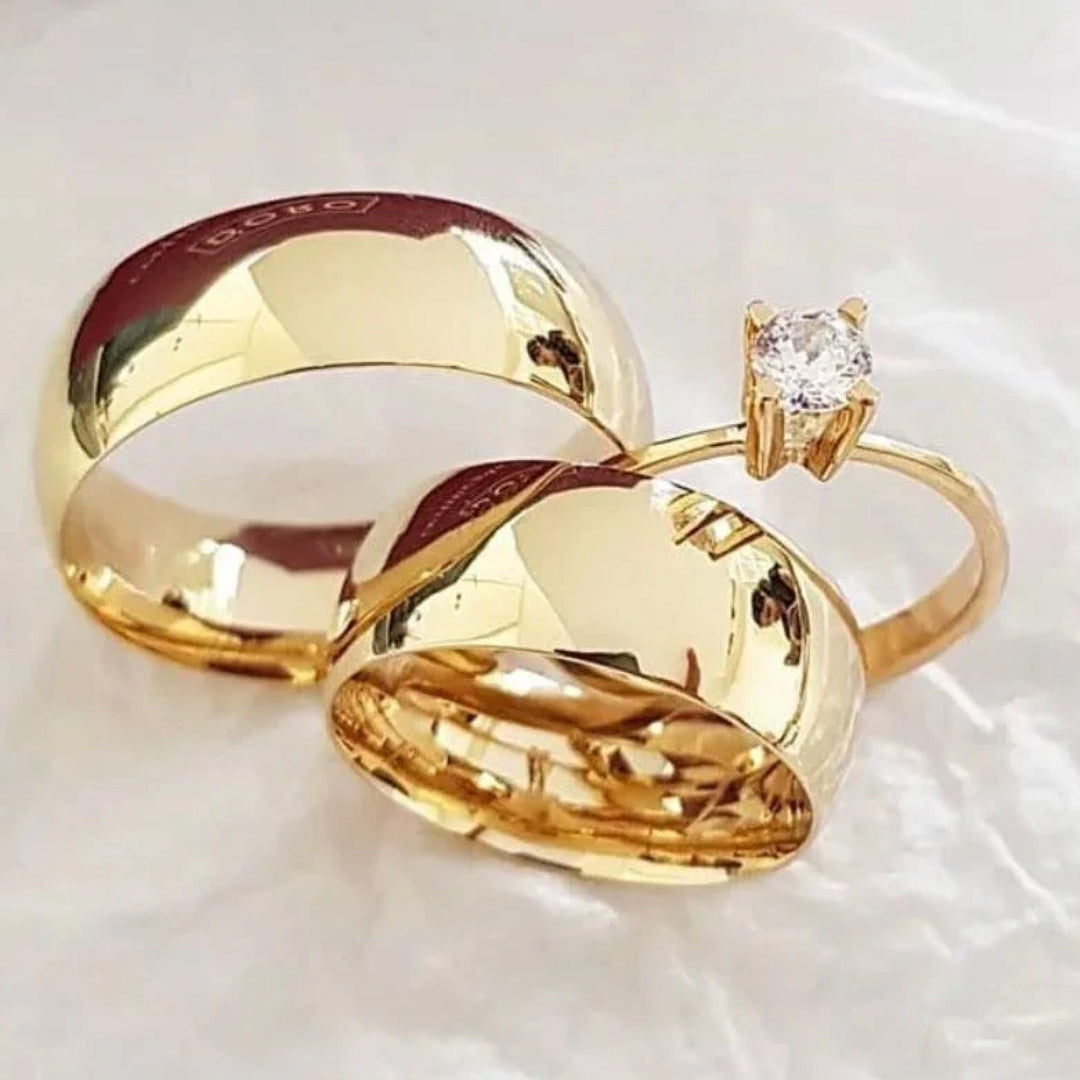 Combo Alianca Moeda Antiga Forro Anatomica Mod Tradicional 6Mm Solitario Liso 2 Anos De Garantia
