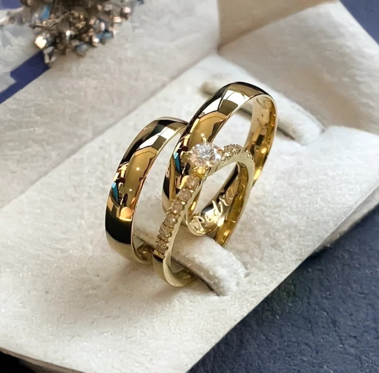 Cada aliança recebe polimento e acabamento artesanal, garantindo perfeição nos mínimos detalhes.
