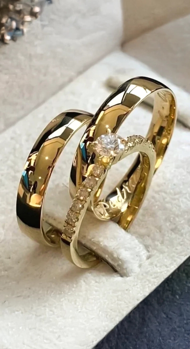 Par de alianças em Ouro 10K com garantia eterna, aproveite!