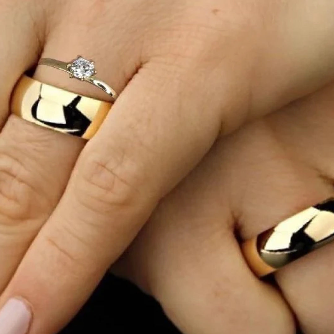 Uma aliança em aço cirúrgico revestida com camada de ouro!!