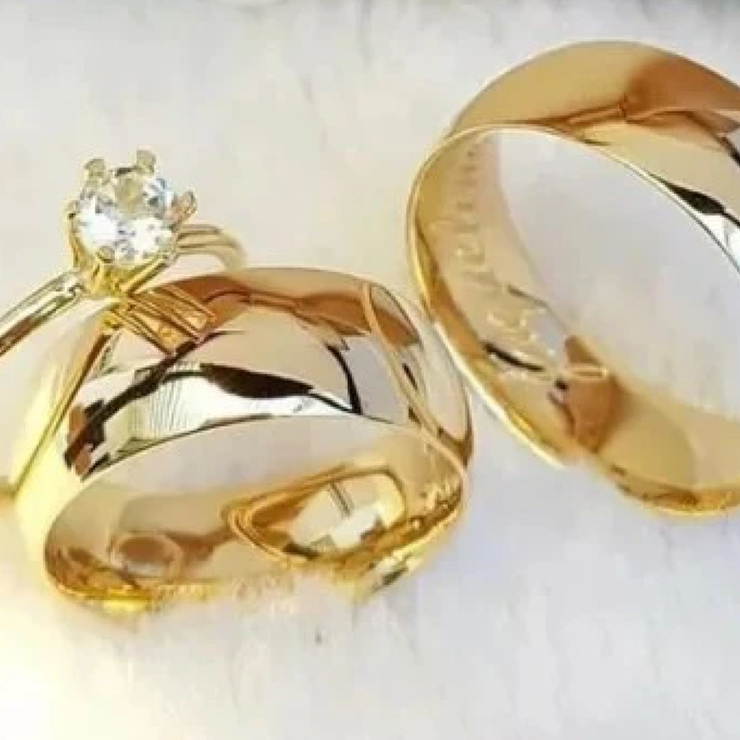 Combo Alianca Tradicional 6Mm Solitario Liso Revestidas A Ouro 18K 1