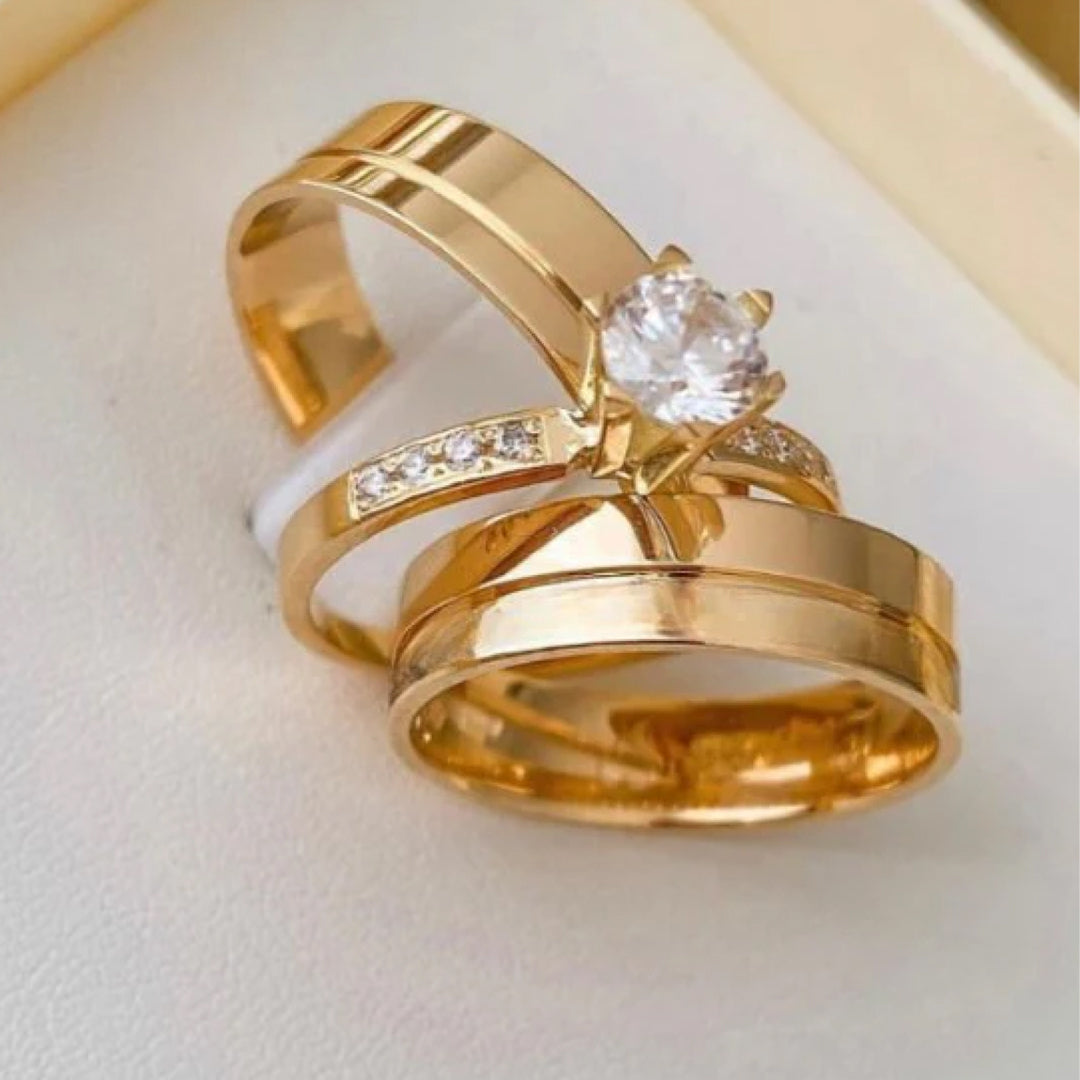 Combo Aliança caneladaTungstênio sem pedras com solitário
