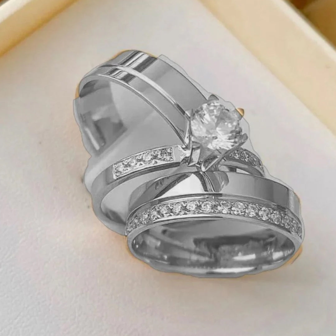 Combo Aliancas De Namoro Compromisso Mega Anel Solitario Cravejado 2 Anos De Garantia